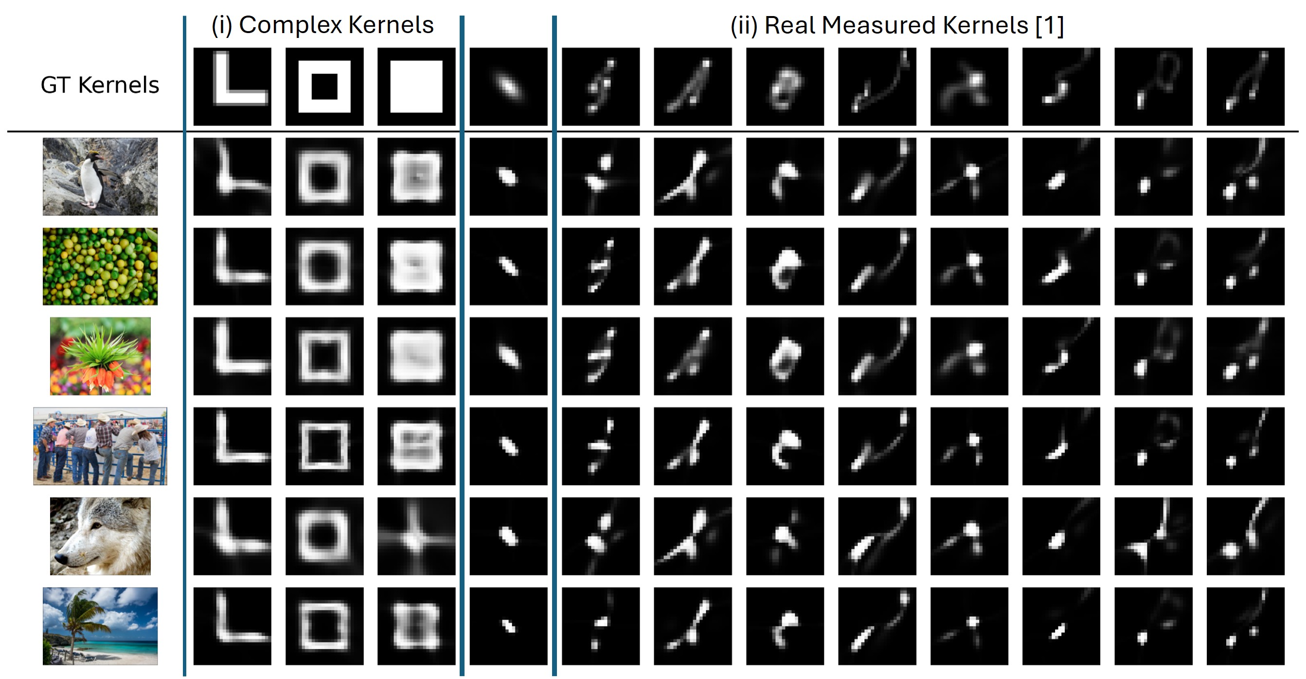 (i) artificial complex non-Gaussian kernels, (ii) real measured downscaling kernels[1].